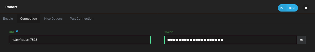 • Set "Radarr URL": http://radarr:7878