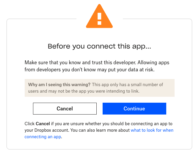 9. If asked to login, use the Dropbox account you want to store your data in.